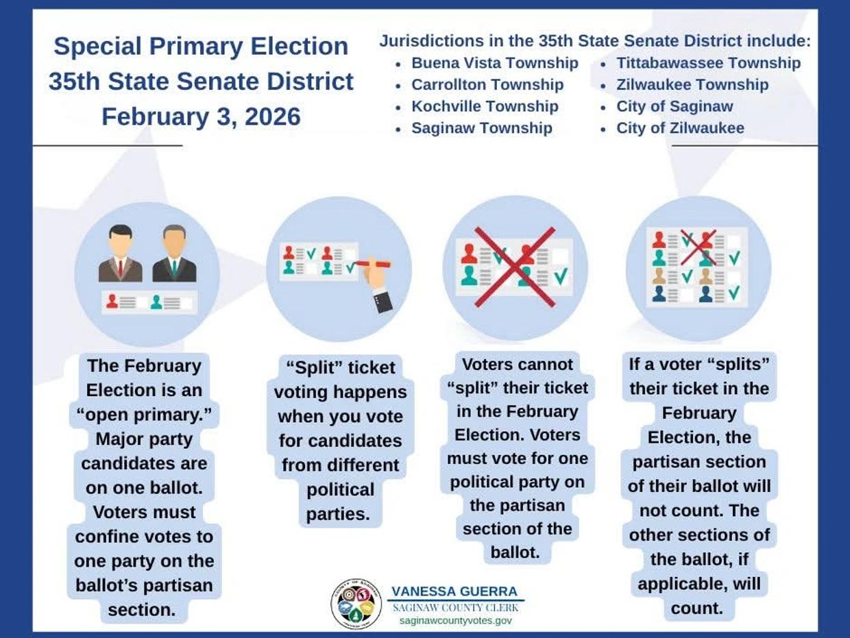 Jurisdictions in the 35th State Senate District include: Buena Vista Twp., Carrollton Twp., Saginaw Twp., Kochville Twp., Tittabawassee Twp., Zilwaukee Twp., City of Saginaw, and the City of Zilwaukee.